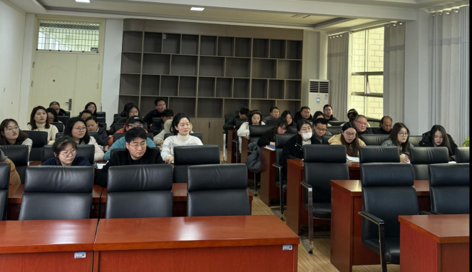 现代服务与经贸学院在校企合作楼二楼会议室召开新学期教职工大会,会议由刘院长主持,