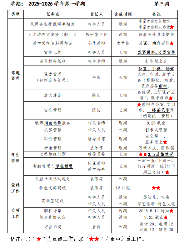 现代服务与经贸学院周工作安排(第三周)