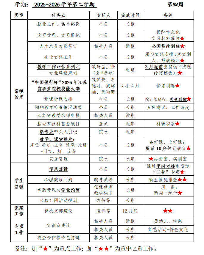 现代服务与经贸学院周工作安排(第四周)